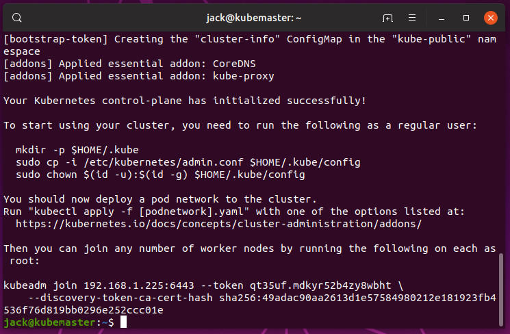确保在上面的命令中替换master的IP地址。所有运行前检查都应该通过,最终您应该获得在所有节点上运行的确切命令,以便它们可以加入群集(如下图)。