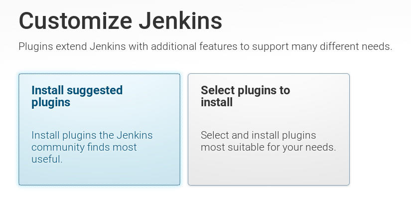 解锁Jenkins后,您可以通过安装建议的插件或仅安装所需的插件来完成安装(如下图)。