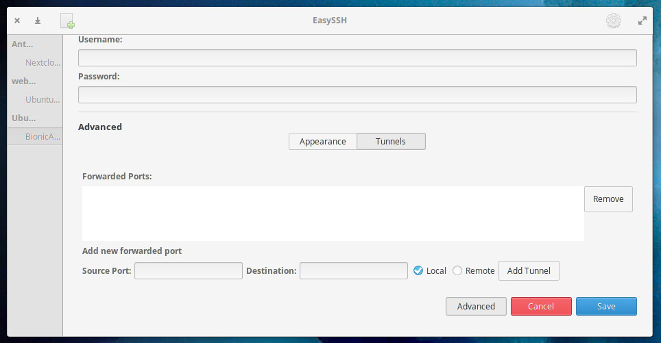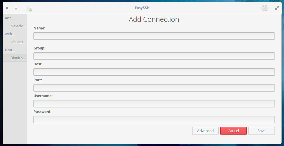 使用EasySSH并不简单。打开应用程序后,单击主窗口中的+按钮并填写连接信息(如下图)。