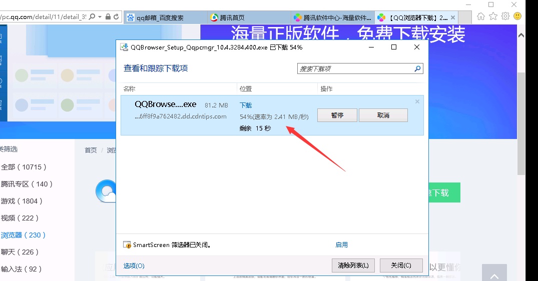 下面我们做一个简单的下载测试,下载内容为腾讯官网的资源(如下图所示),下载速度为2.4M/S,速度平稳。