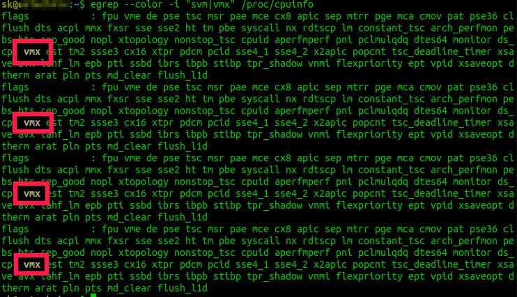 $ egrep "(svm|vmx)" /proc/cpuinfo