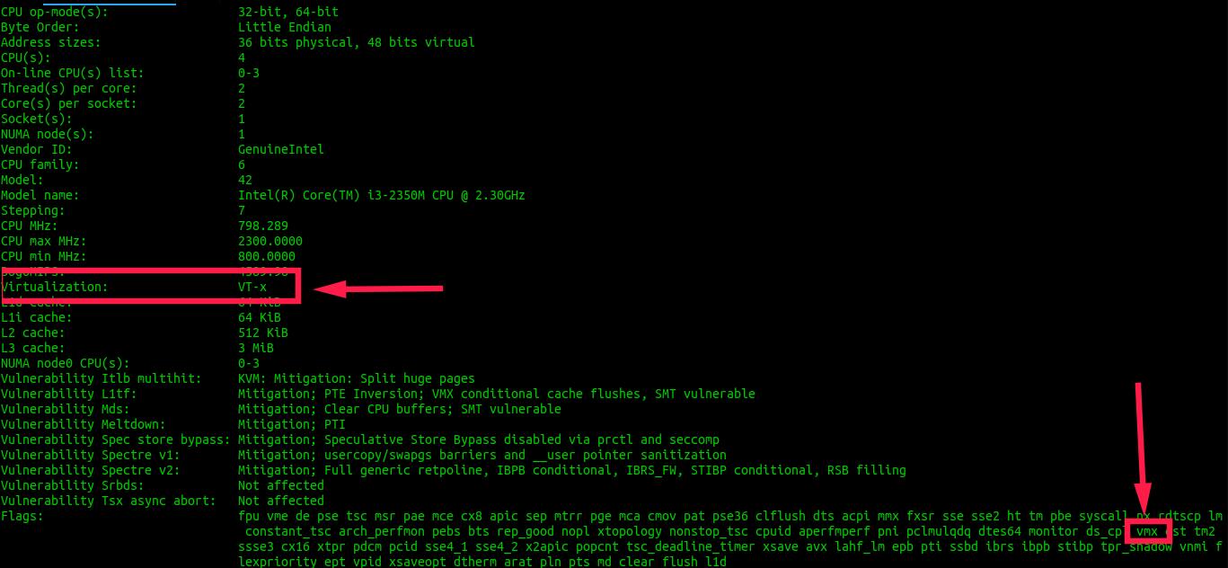 $ egrep --color -i "svm|vmx" /proc/cpuinfo