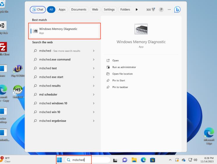 对于Windows10和11,右键单击“开始”图标并选择“运行”或单击“搜索”图标,输入mdsched并按Enter(图A)。