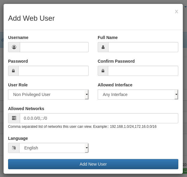 这里将向您展示如何创建一个新的NTOPNG用户以及如何将其限制在可以访问的范围内。