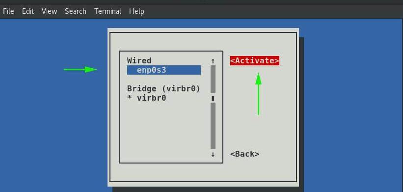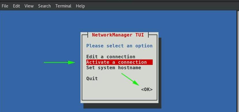 选择“Activate a connection ”激活连接,然后选择“ OK ”,然后按Enter。