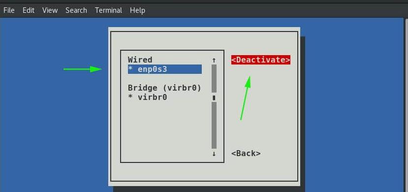 选择您的接口名称,然后导航到“Deactivate”停用选项,然后按Enter。