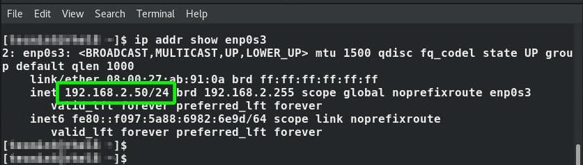 $ ip addr show enp0s3