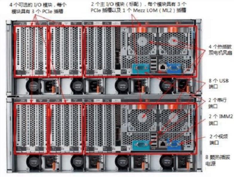 下图显示了x3950X6服务器的后视图。