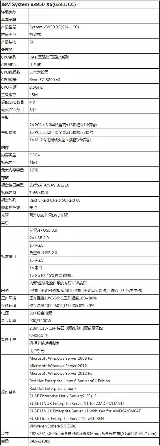 IBM x3950 X6服务器是一款八路8U机架式服务器,它采用的是第六代EnterpriseX-Architecture。它提供快速的应用性能,基于灵活的系统设计,并且是关键任务数据库、企业应用和虚拟化环境所需的极具弹性的平台。