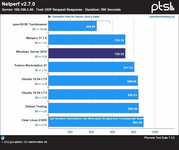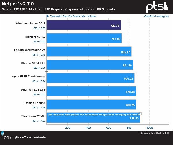 不过在 UDP 测试中,Manjaro 略微领先于 Windows Server 2016。