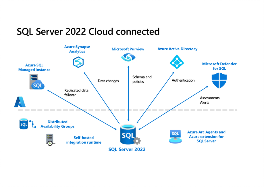 SQL Server 2022 可以连接到关键的 Azure 服务,让组织通过自己的基础设施享受云的优势。