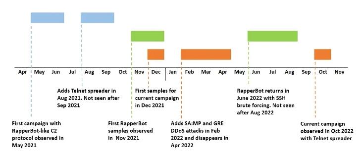 研究人员在周二的一份报告中说,事实上,与 RapperBot 相比,这次活动更像是 2 月份出现然后在 4 月中旬神秘消失的旧事件。